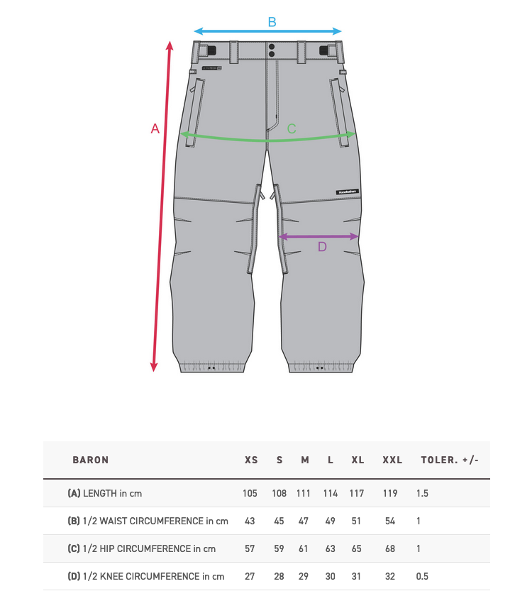 I pantaloni Baron riportano sulle piste la vestibilità ampia e lo stile retrò. Leggero e non isolato, realizzato con tessuto UltraTech per mantenerti impermeabile e traspirante. Questi sono i nostri pantaloni più larghi, perfetti per i rider che desiderano shreddare con stile, sia nel park che nel resort. WATERPROOF PANTS WITH LAMINATED MEMBRANE Waterproof: 10.000 mm Breathable: 10.000 gm Fit: Baggy PANTS WITHOUT INSULATION Fabric: 100% polyester Lining: 100% nylon taffeta