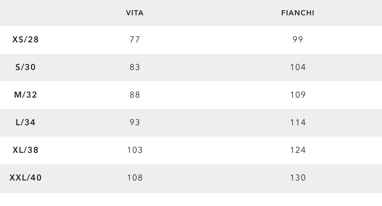 GUIDA ALLE TAGLIE MISURA FIANCHI E VITA